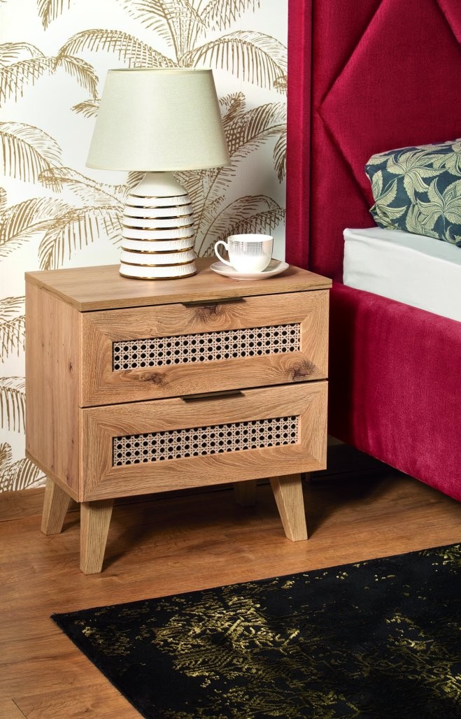 Noćni ormarić Felar s elegantnom crnom i hrastovom površinom savršen je za pohranu pokraj kreveta i donosi dašak modernosti u spavaću sobu.