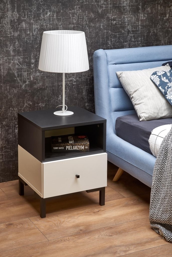 Noćni ormarić Marvik nudi profinjen moderan dizajn s kombinacijom crnih i bijelih tonova. Idealna za minimalističke spavaće sobe, donosi stil i funkcionalnost s dodatnim prostorom za pohranu.