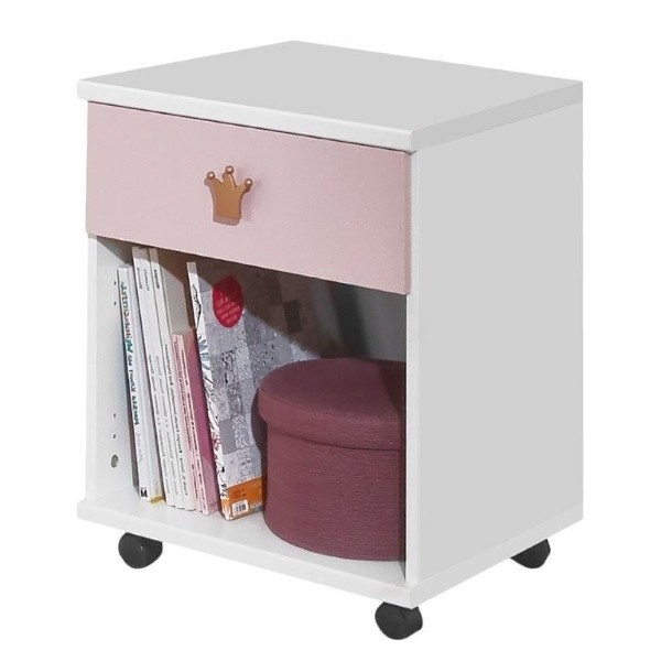 Noćni ormarić CARA dostupan je u prekrasnoj kombinaciji bijele i ružičaste boje te s ukrasom u obliku krune koji će oduševiti svaku djevojčicu. Ima prikladnu policu i ladicu za odlaganje tako da djeca mogu pohraniti sve svoje omiljene knjige. Pogledajte ostale artikle iz ove kolekcije!