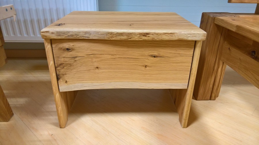 Noćni ormarić GOTEBURG je rustikalnog izgleda iz masivnog hrastovog drva z jednom ladicom. Provjerite još krevet iz tog programa.