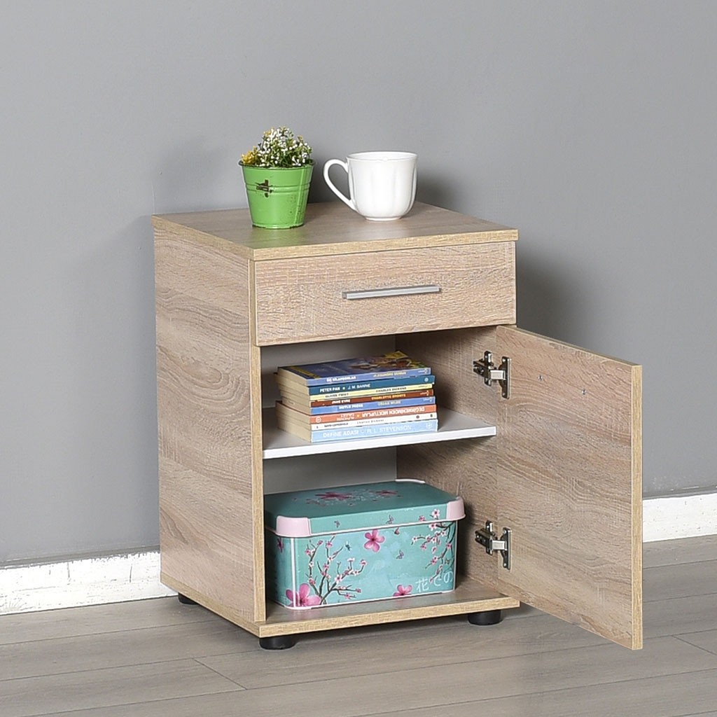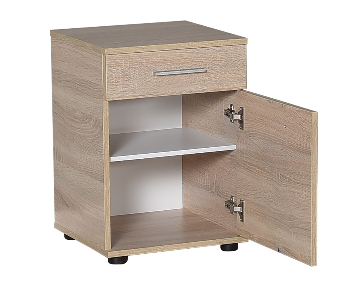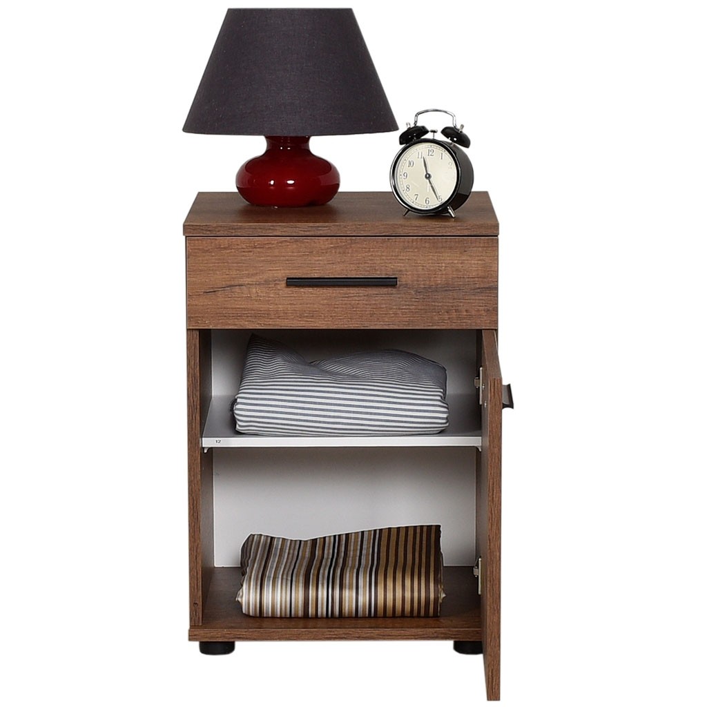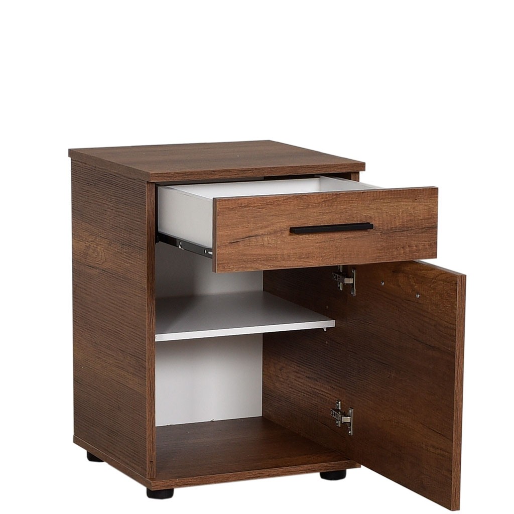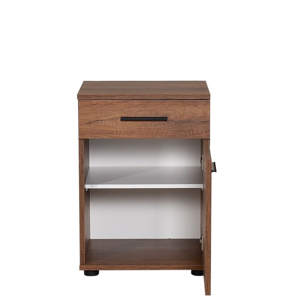 Noćni ormarić KAMADU 2 dostupan je u tri različite boje koje se lijepo uklapaju u svaku spavaću sobu, dječju i sobu za mlade. Ima prikladnu ladicu na vrhu i veliki prostor za pohranu ispod s jednom policom i klasičnim vratima.