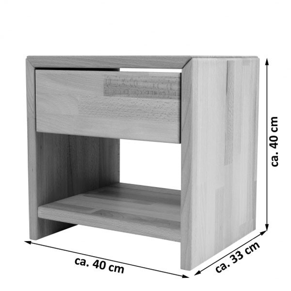 Noćni ormarić LAVANDA je iz masivnog uljenog bukovog drva s policom. Provjerite još krevet iz tog programa.