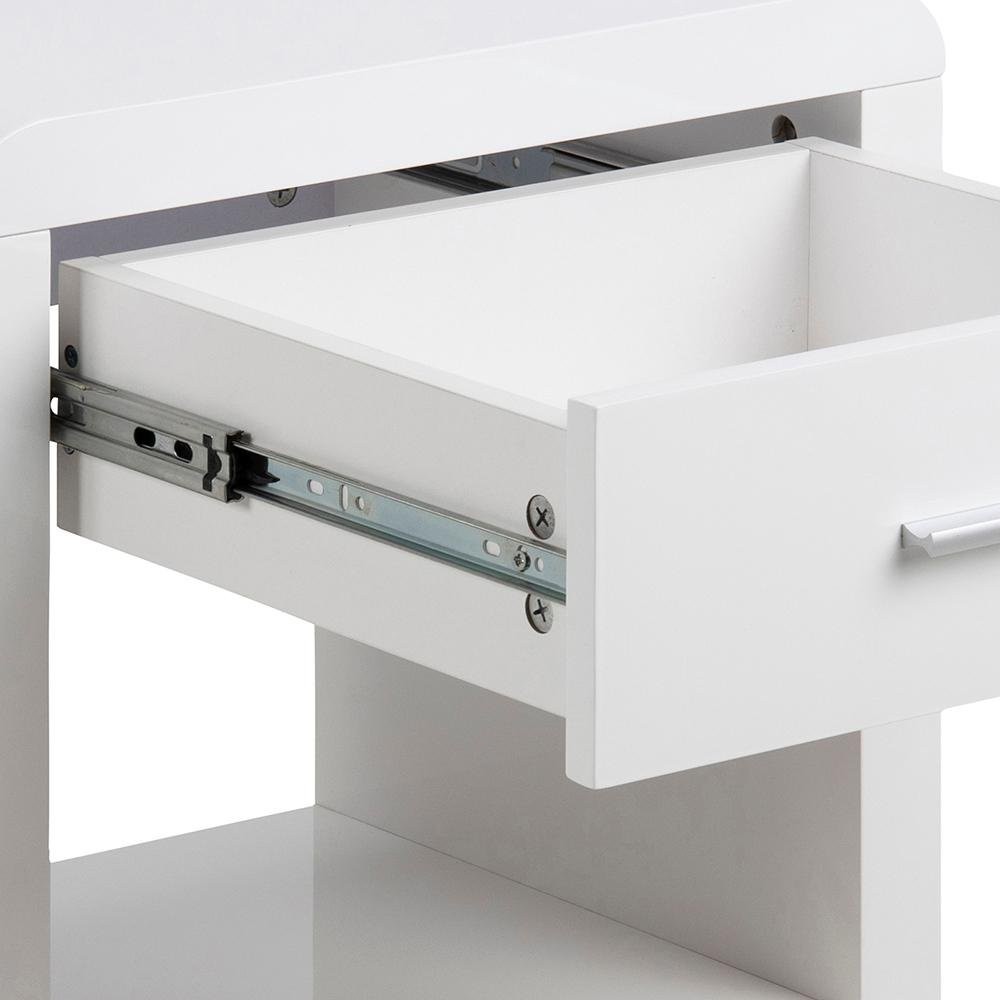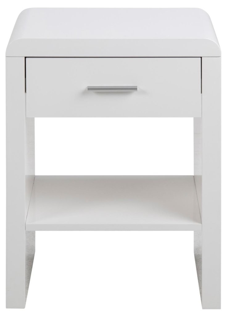 Naš bijeli noćni ormarić Naub sa svojom jednostavnom formom, zaobljenim siluetama i sjajnim završnim tretmanom sigurno postavlja ton svake spavaće sobe. Izgled ormarića ističe svjetlost i donosi vizualni interes, ali ne remeti mir spavaće sobe. Noćni ormarić uključuje otvorenu policu koja omogućuje protok zraka i daje mu lagan izgled. Osim otvorenog prostora, tu je i ladicu u kojoj su sve potrebne stvari pri ruci.