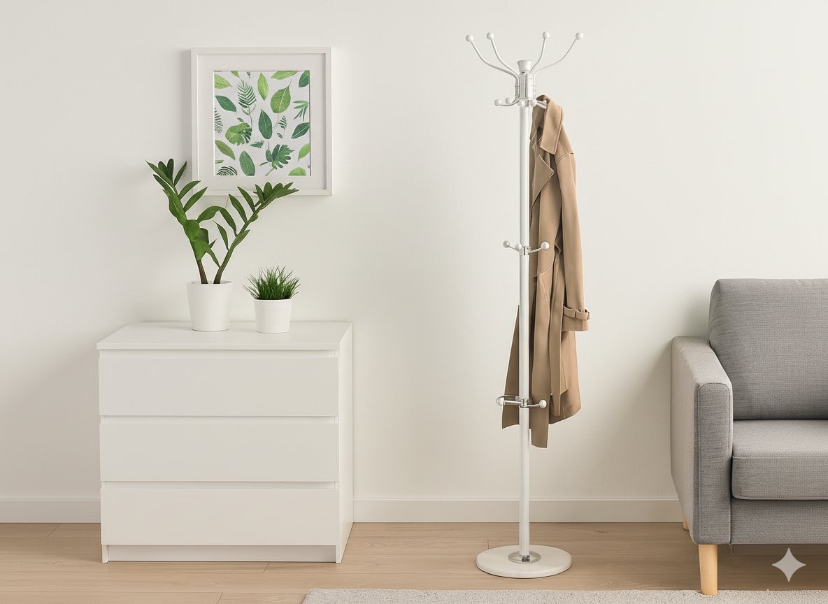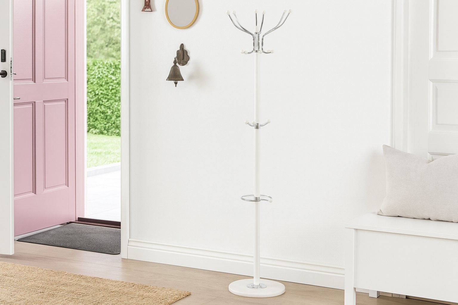Vješalica Čonen (bijela) je funkcionalan komad namještaja odnosno dodatak za dom koji spaja praktičnost i uredan izgled. Boja u nijansi bijela lako se uklapa u različite ambijente. Odabir materijala poput metala i mramora upotpunjuje funkcionalnu i vizualno uravnoteženu izvedbu.