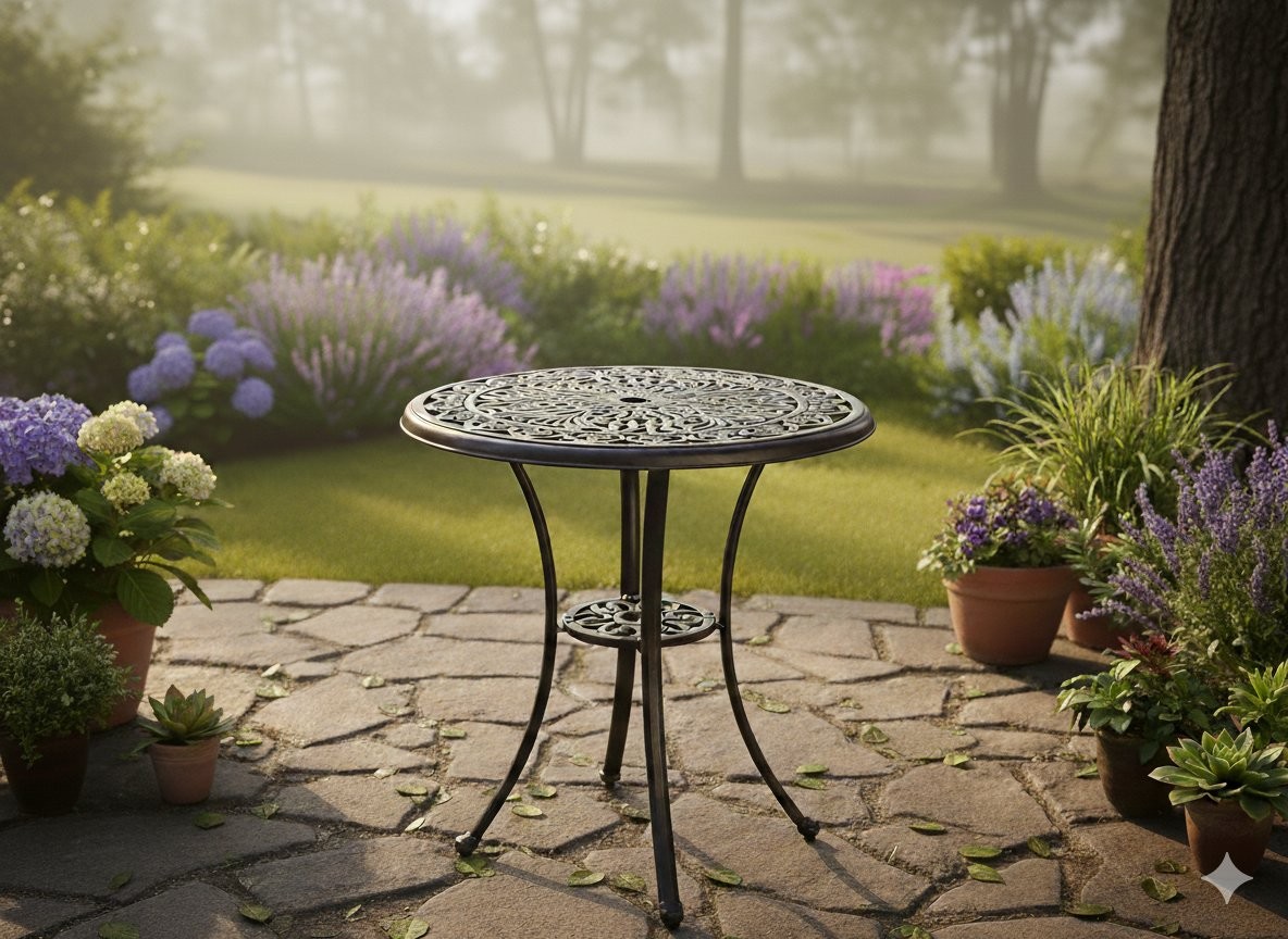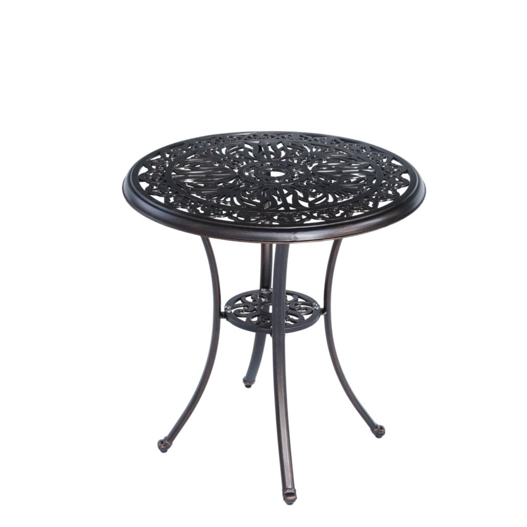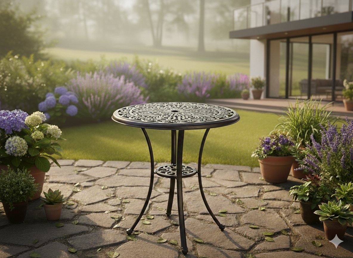 Okrugli vrtni stol Danbur (antik smeđa) donosi promišljeno rješenje za korištenje u vrtu, na terasi, balkonu ili u patio prostoru. Izvedba u nijansama antik smeđa, smeđa omogućuje jednostavno usklađivanje s različitim vanjskim ambijentima. Materijali, kao što su aluminij, puni odljevci od aluminija, doprinose urednom izgledu i praktičnoj upotrebi.