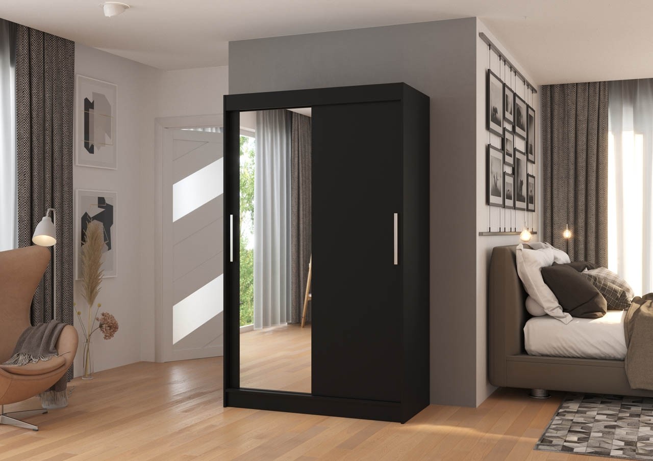 Ormar s kliznim vratima BARIO sadrži police na koje možete staviti majice, trenirke, dok bolje stvari možete objesiti na vješalicu gdje će vaša odjeća i košulje izgledati uredno. Ormar je dostupan u više boja.