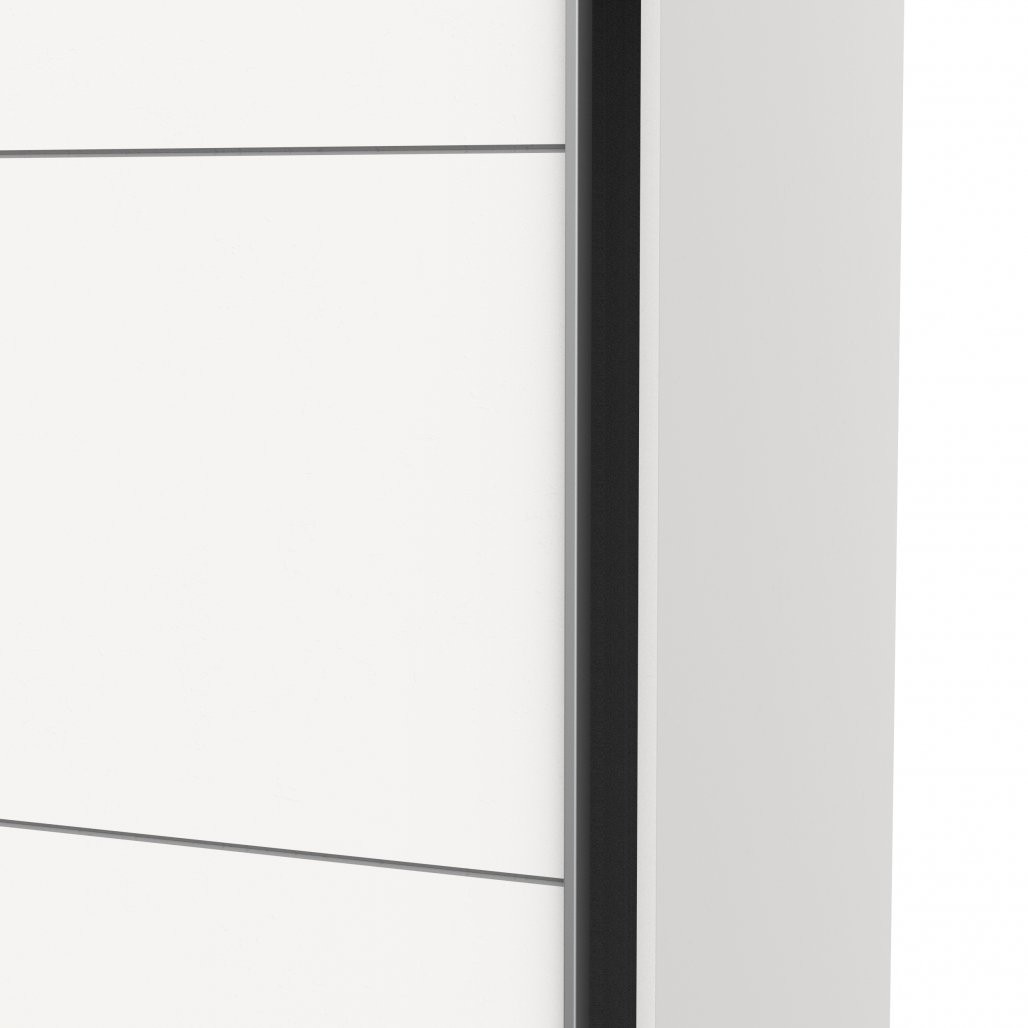 - Široki ormar s kliznim vratima, dostupan u mat bijeloj ili sonoma hrast boji