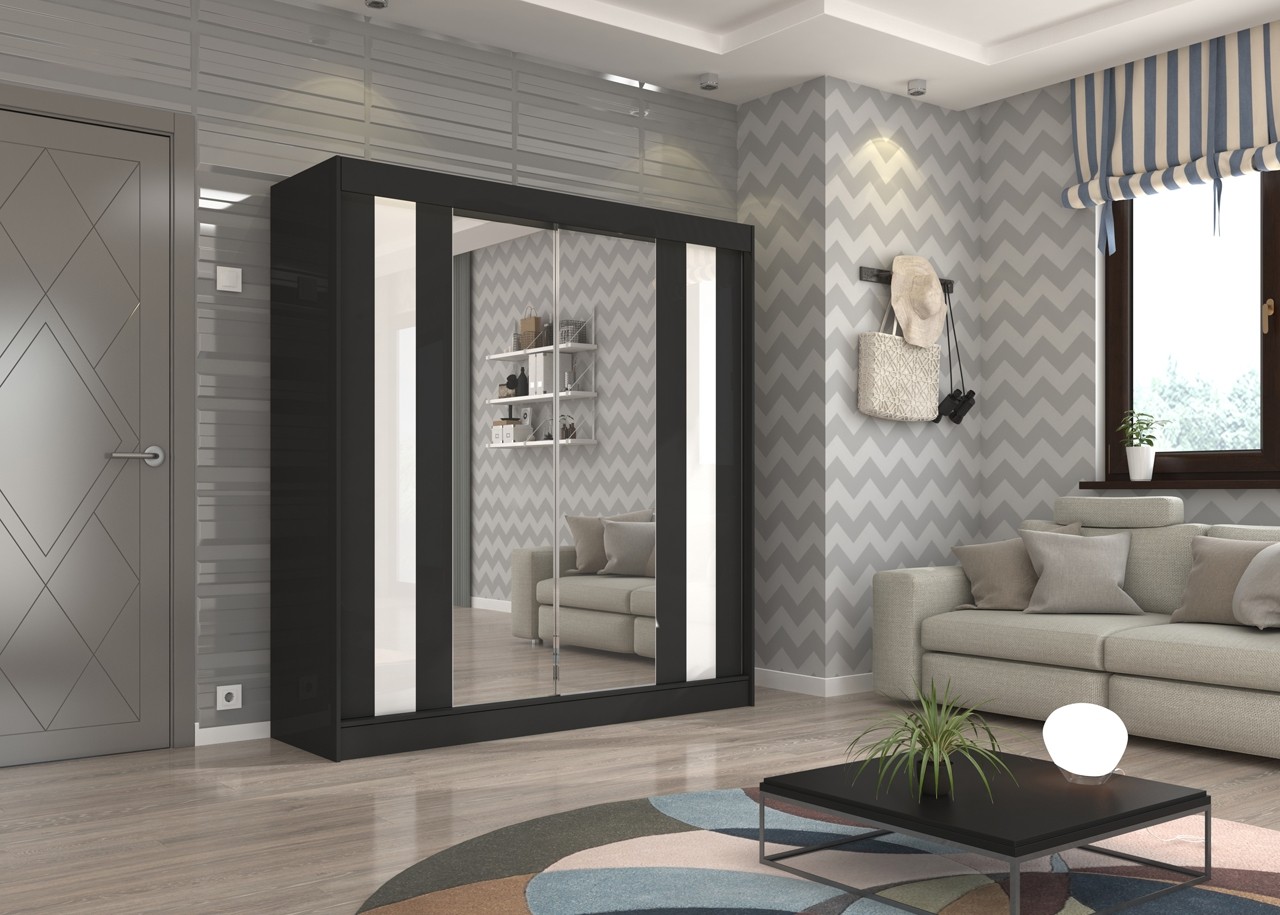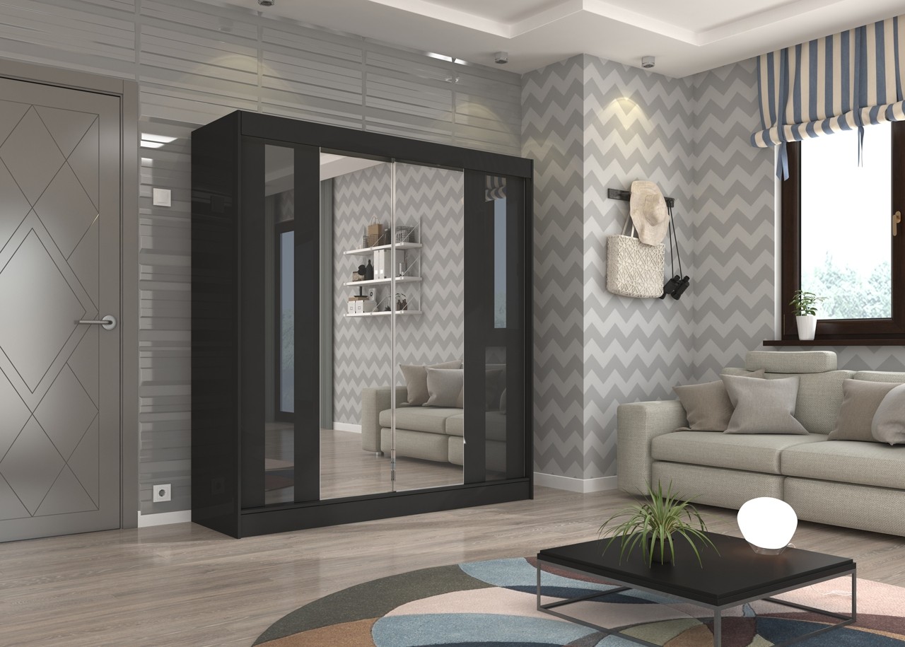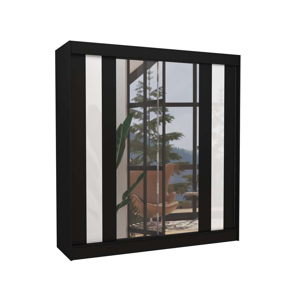 Garderobni ormar s kliznim vratima KEITA 200 CM izrađen je na izuzetno atraktivan način. Ovaj komad namještaja dizajniran je za prilagodljivo odlaganje, što vam omogućuje da maksimalno iskoristite svoj prostor. Ormar sadrži sedam prostranih polica i viseće šipke koji omogućuju besprijekornu organizaciju odjeće.