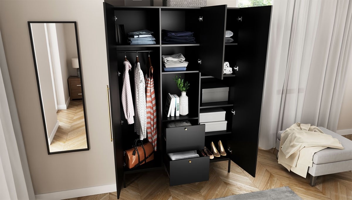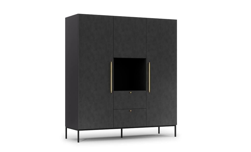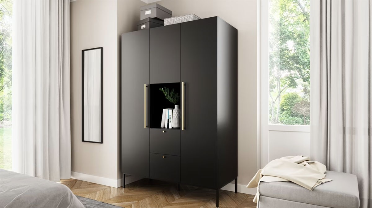 Ormar LANZZI modernog je izgleda i dostupan je u crnoj mat boji koja se savršeno uklapa u spavaće sobe koje traže moderan stil. Ormar nudi mnogo prostora za pohranu i vješanje kako bi vaša odjeća bila organizirana, a spavaća soba čista.
