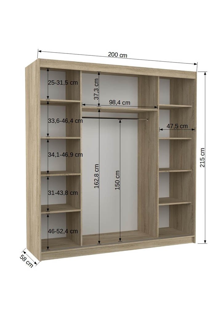 Kvalitetan i moderan garderobni ormar MEGAN nudi funkciju kliznih vrata i dostupan je u nekoliko boja. Ormar sadrži police za odlaganje i slaganje vaše odjeće te viseću šipku na koji možete objesiti košulje i večernje haljine.