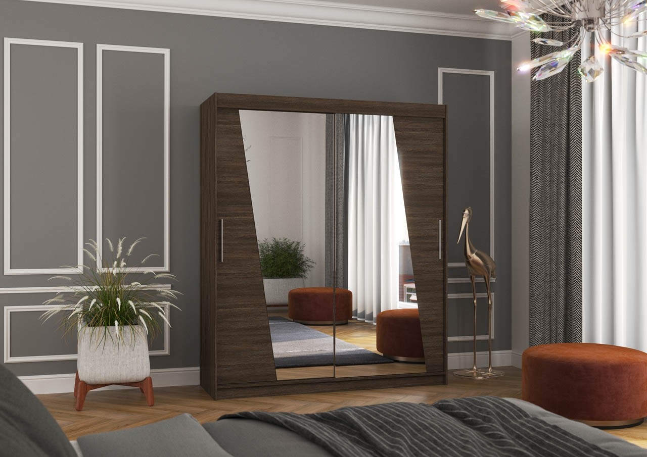 Ormar PRETO moderan je ormar zanimljivog oblika kosog zrcala koji optički povećava prostor. Ormar vam nudi police na koje možete staviti svoju odjeću i šipku za vješanje haljina ili košulja. Dostupan je u nekoliko boja i zadovoljit će različite ukuse.
