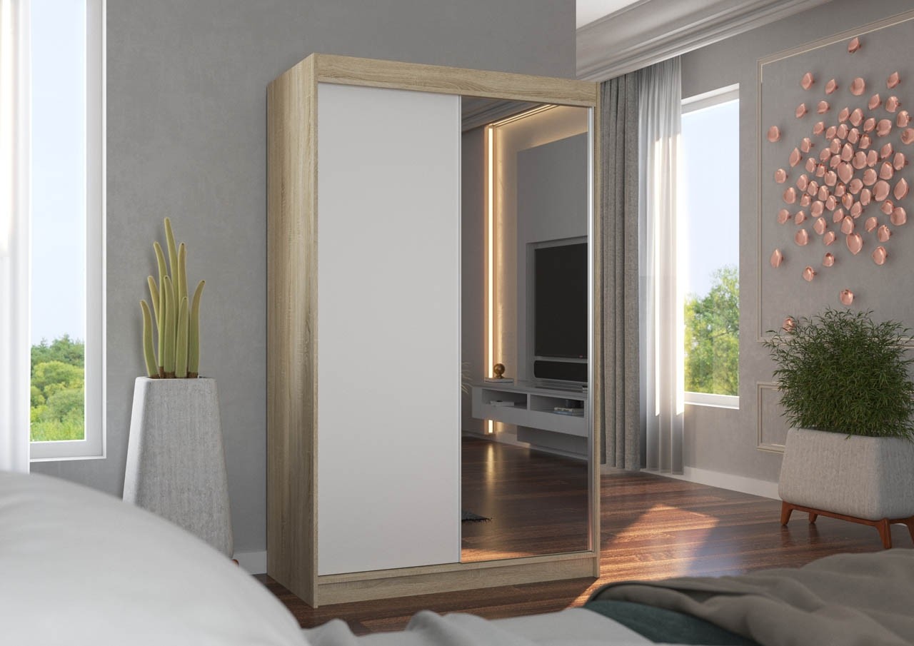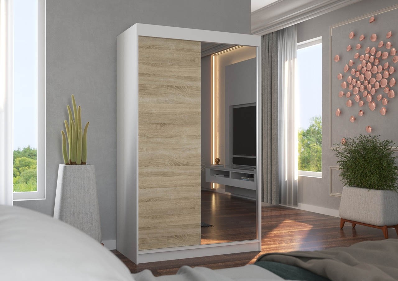 Elegantan i praktičan ormar REWENA ima klizna vrata i dostupan je u nekoliko boja. Praktičnost ormaru daju police na koje možete odlagati odjeću i šipka za vješanje koja osigurava da vam se košulje neće zgužvati.
