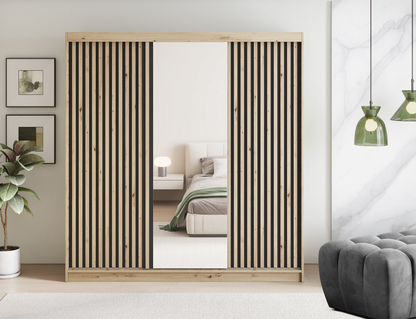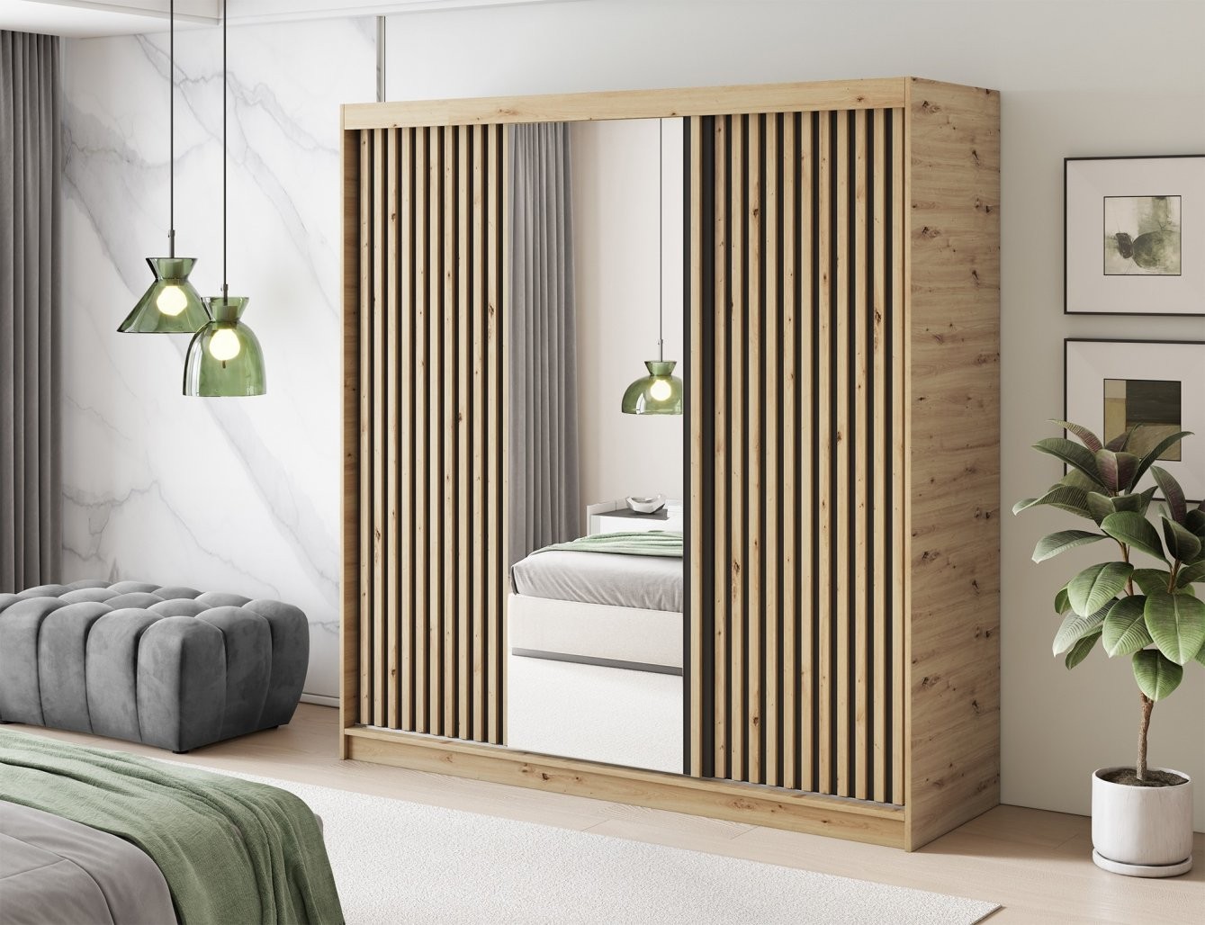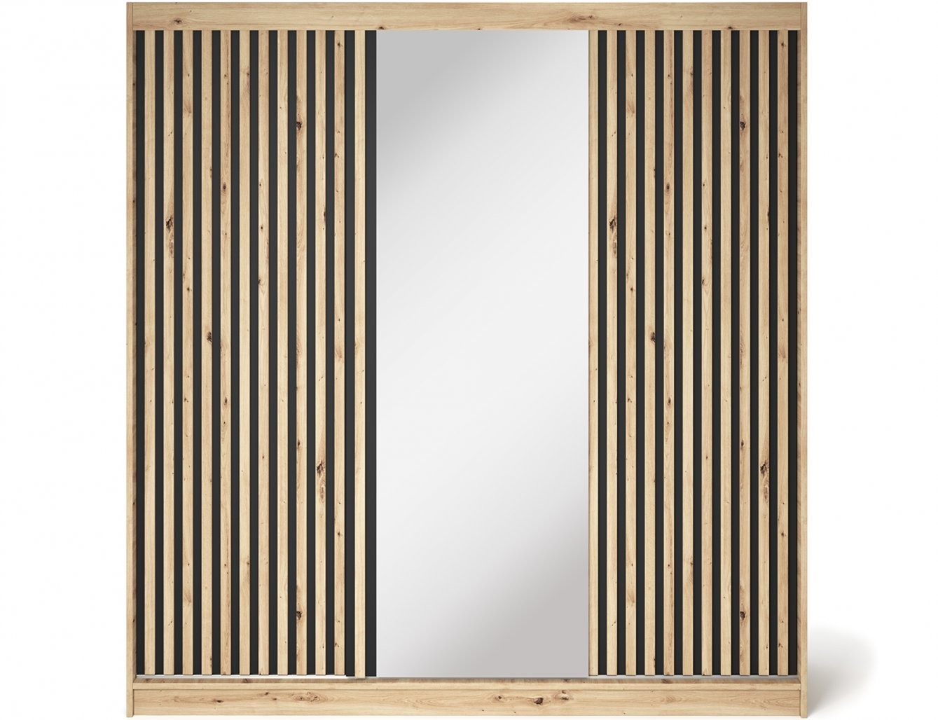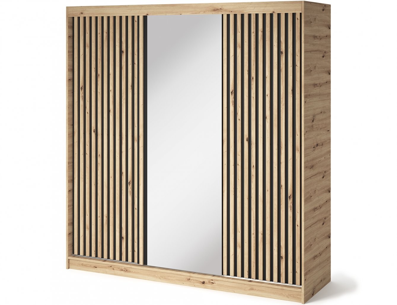 Izrađen je od izdržljive laminirane iverice u privlačnoj nijansi hrasta artisan, što mu daje prirodan i topao izgled. Prednje ploče su obrađene ABS rubovima za dodatnu zaštitu i dulji vijek trajanja. Jedna od kliznih vrata ima ugrađeno ogledalo, koje vizualno povećava prostor i iznimno je praktično za svakodnevnu upotrebu.