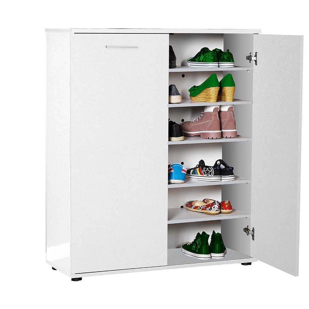 Jednostavan ormarić za cipele ADRON 520 dostupan je u bijeloj, nježnoj i neutralnoj boji koja se lijepo uklapa u svaki hodnik. Unutrašnjost ormara sadrži pet polica, koje vam omogućuju dosta prostora za odlaganje cipela, pa će vaš hodnik uvijek biti uredan. Ormarić ima dvokrilna vrata koja se otvaraju prema van i opremljena su metalnim ručkama. Ormarić ima četiri potporne noge koje omogućuju da bude stabilan. Na poleđini ćete pronaći rupice koje vas spašavaju od neugodnih mirisa iz ormara.