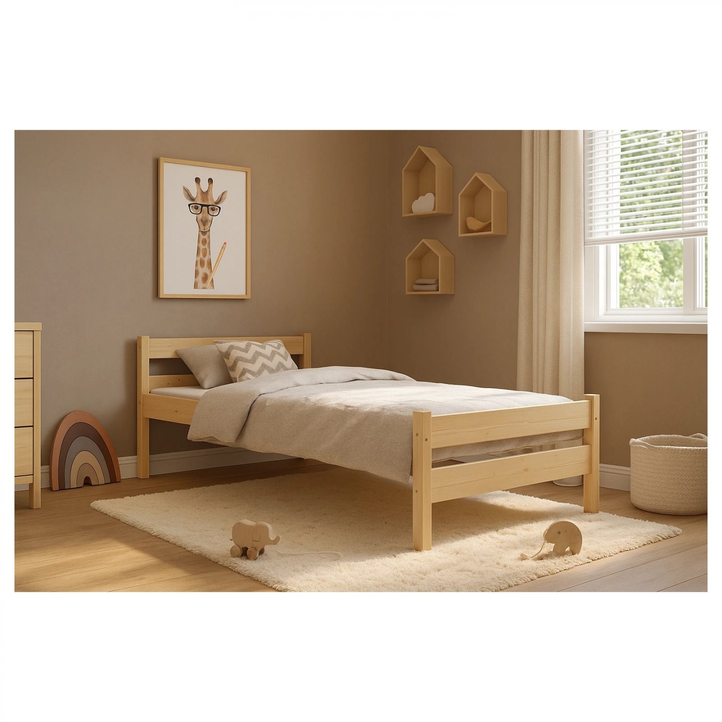 Krevet je oblikovan u jednostavnom stilu koji se lijepo uklapa u različite prostore. Dostupan je s ležajem ili bez ležaja te s ladicom ili bez ladice, što omogućuje veću prilagodljivost potrebama korisnika. Zbog različitih dimenzija prikladan je za različite uzraste i svakodnevnu upotrebu.