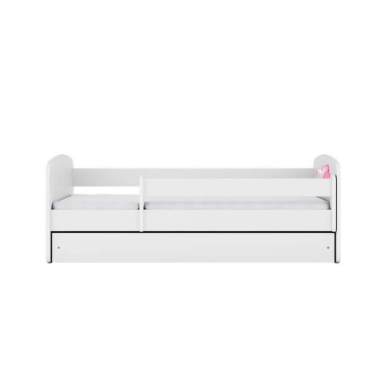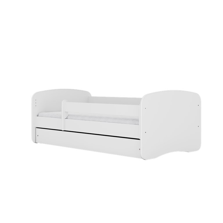Krevet je osmišljen s naglaskom na udobnost i sigurnost. Opremljen je pomičnom zaštitnom ogradicom dužine 100 cm koja pridonosi sigurnijoj upotrebi, a zaobljeni rubovi dodatno povećavaju osjećaj sigurnosti. Uključena letvičasta podloga pruža odgovarajuću potporu ležaju, a ojačana konstrukcija doprinosi stabilnosti. Proizvod je dostupan s ladicom ili bez ladice te s ležajem ili bez ležaja, što omogućuje veću prilagodbu potrebama korisnika.