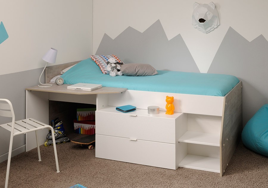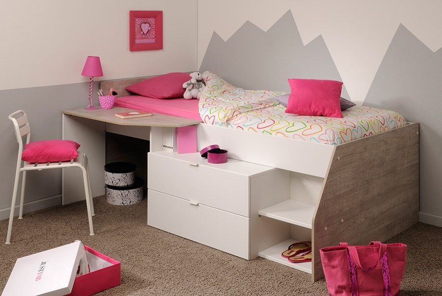 Otroška postelja Milky je primerna tako za dečke kot deklice. Postelja ima dva predala in pisalno mizo, 2 priročni stopnici pa omogočata lažji dostop do ležišča.