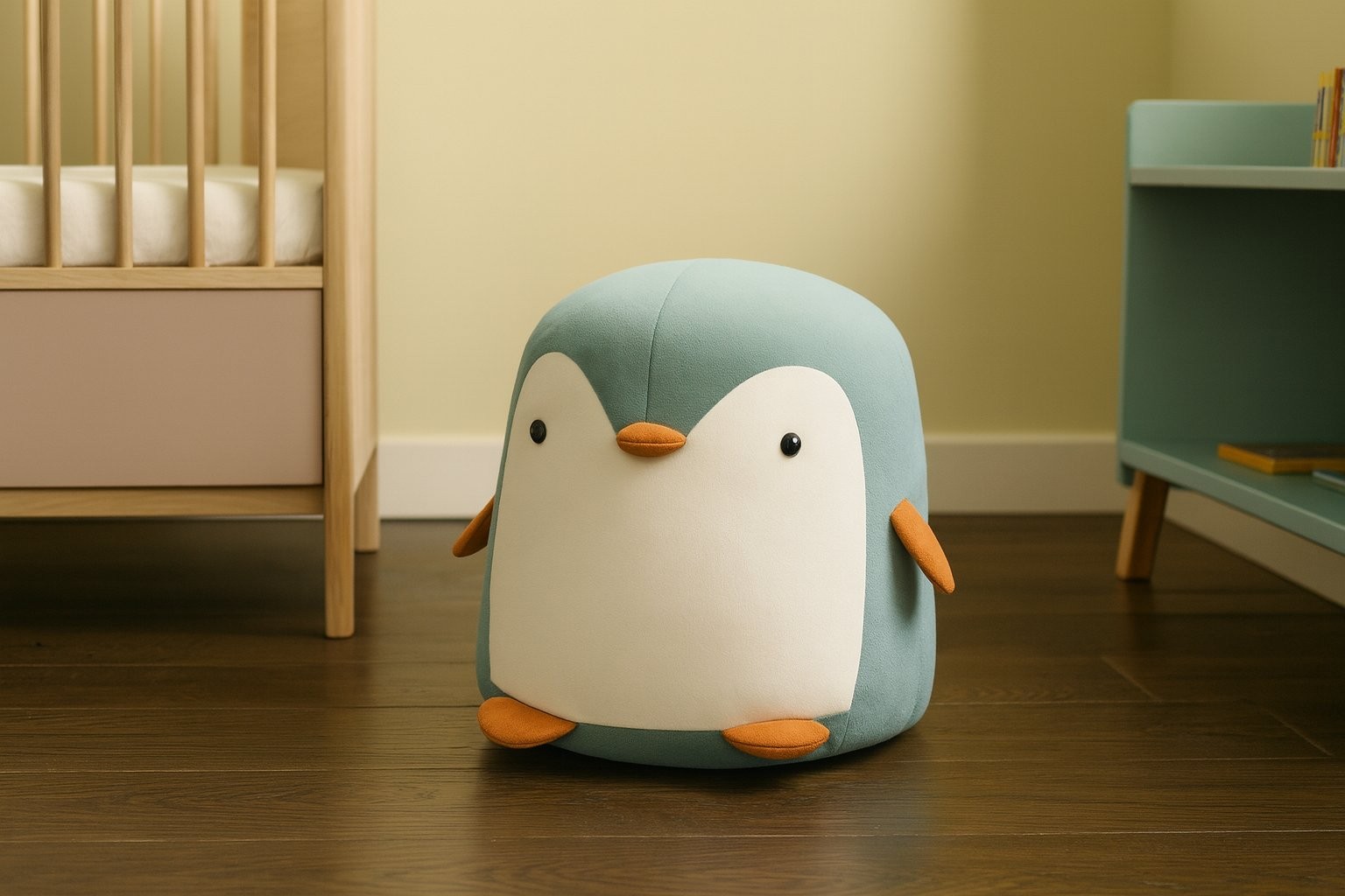 Može se koristiti kao dodatno sjedište, oslonac za noge ili kao dekorativan naglasak u dnevnom boravku, spavaćoj ili dječjoj sobi. Motiv pingvin poskrbi za igriv videz, ki lepo dopolni otroški prostor. Višina 34 cm je praktična za svakodnevno upotrebu.