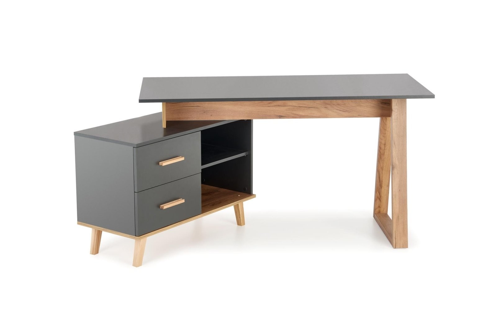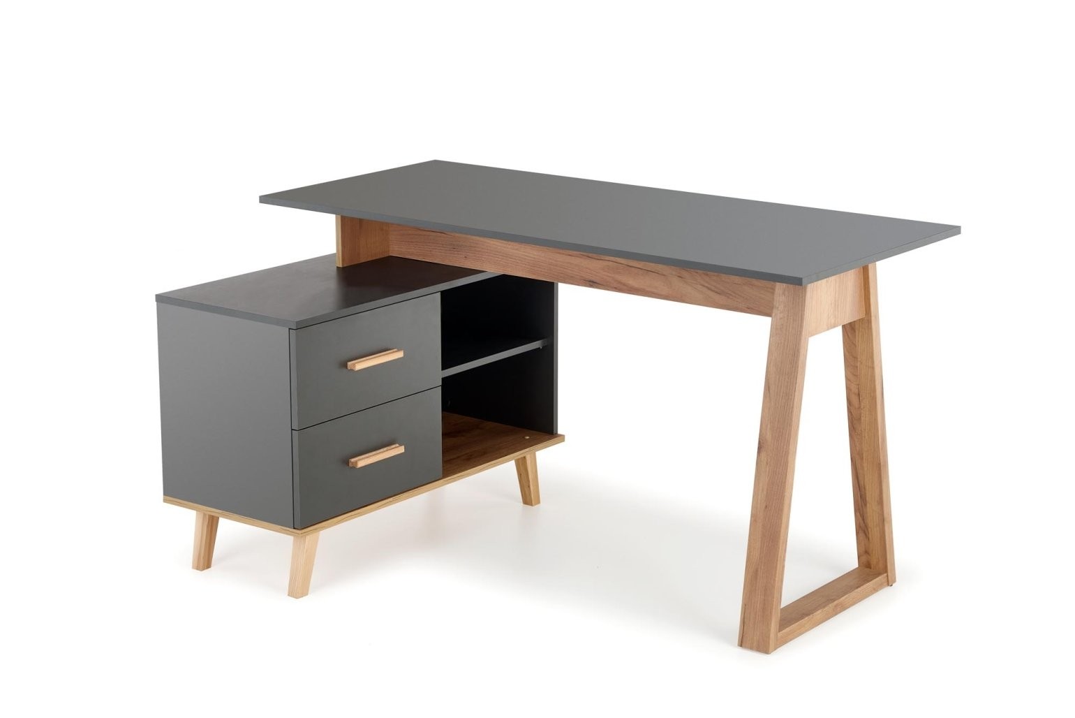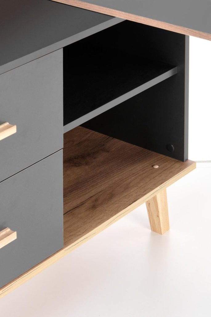 Radni stol Darlin duljine od 134 do 210 cm idealan je za kućni ured ili radni kutak. Elegantna kombinacija antracitne i votan hrast boje naglašava moderan stil.