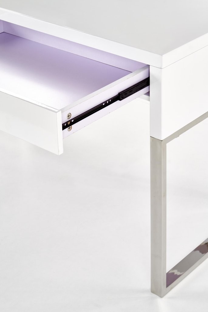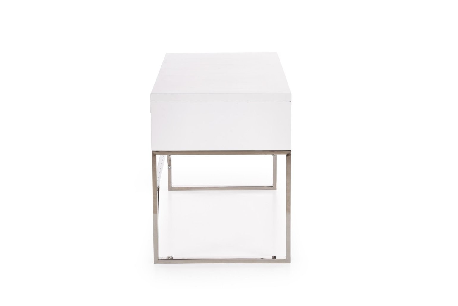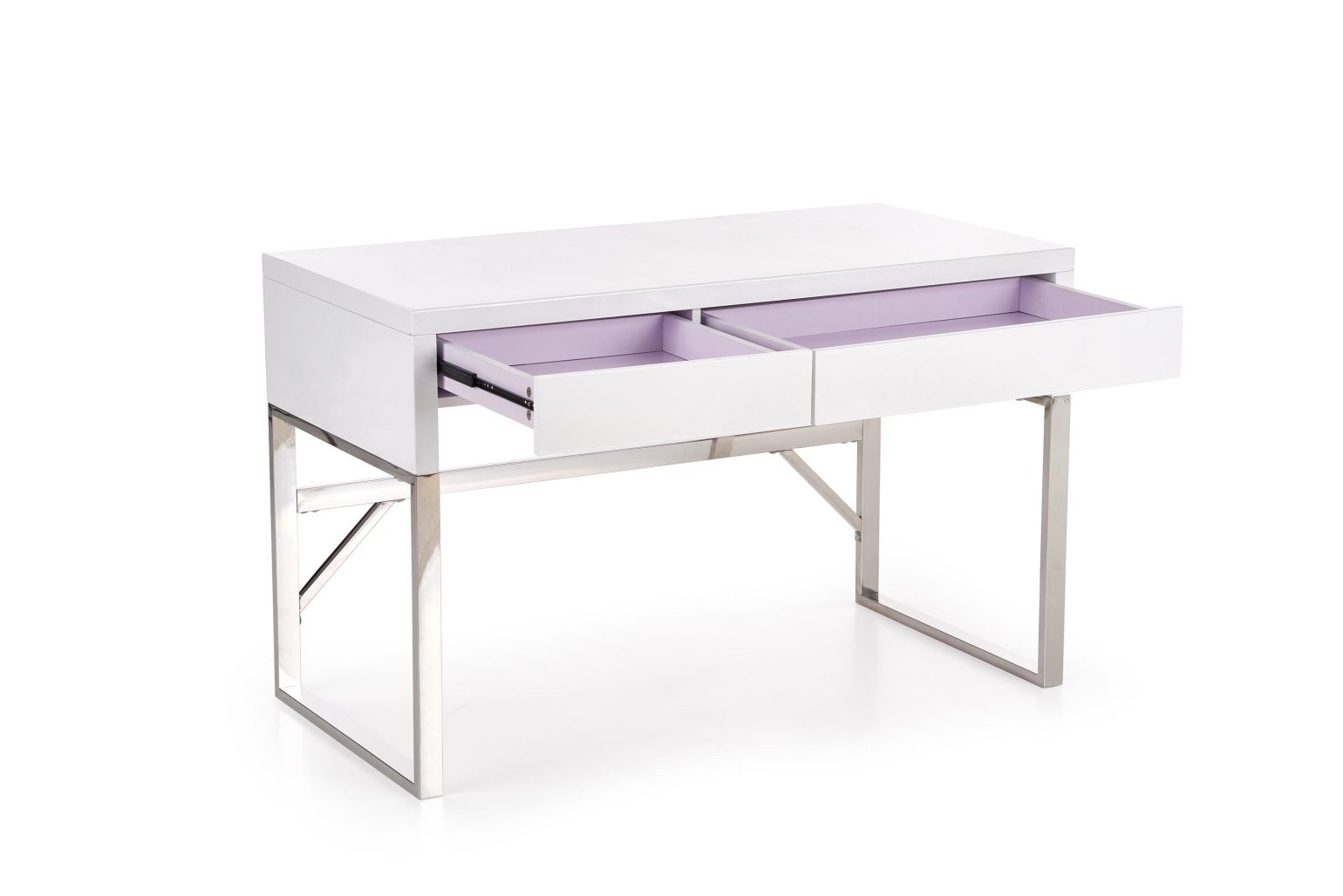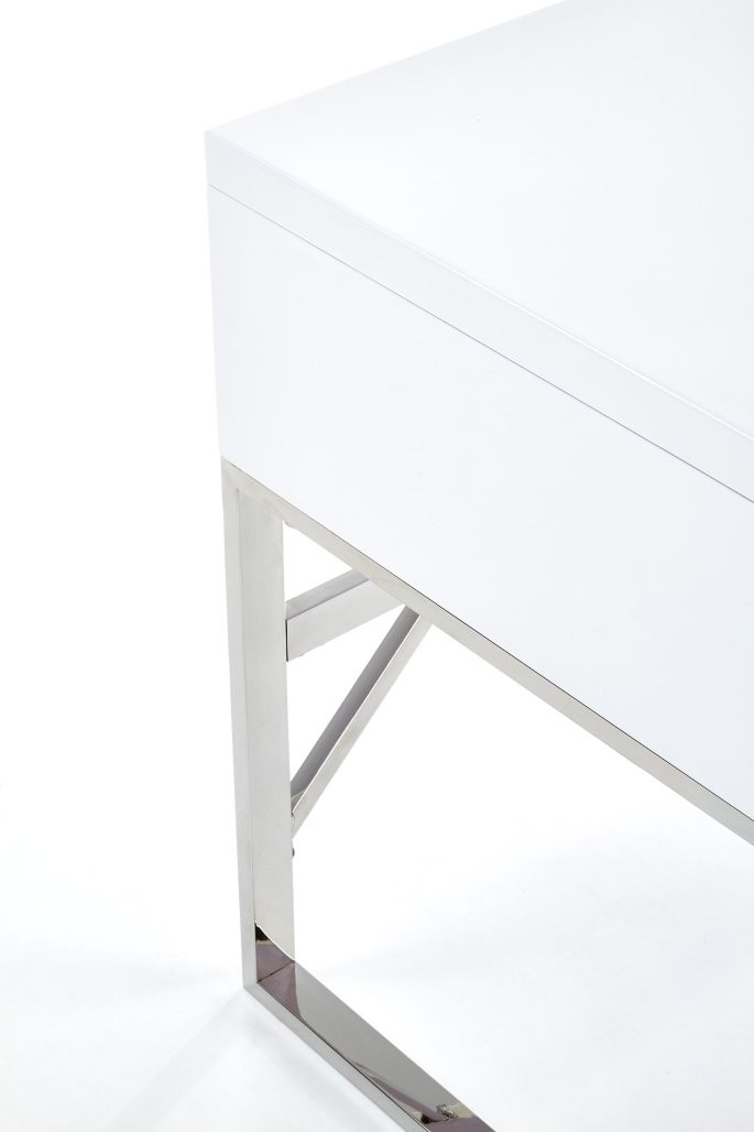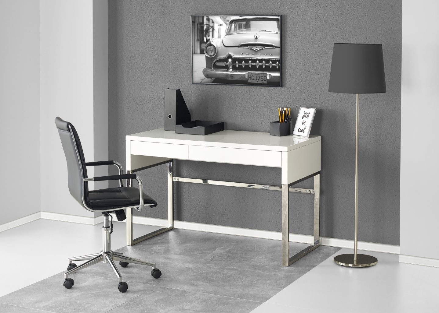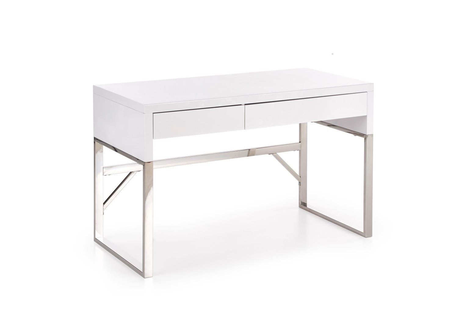 Radni stol Jalen s bijelom lakiranom površinom u visokom sjaju i kromiranim okvirom elegantan je dodatak za moderni ili klasični ured. Idealan za poslovne ili kućne prostore.