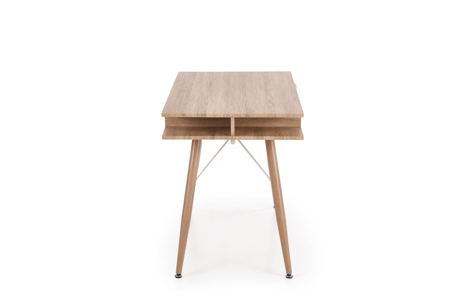 Radni stol Loren s površinom u boji hrasta sonome i bijelim metalnim okvirom praktičan je i moderan izbor za kućne urede. S jednostavnim dizajnom savršeno se prilagođava svakom prostoru.
