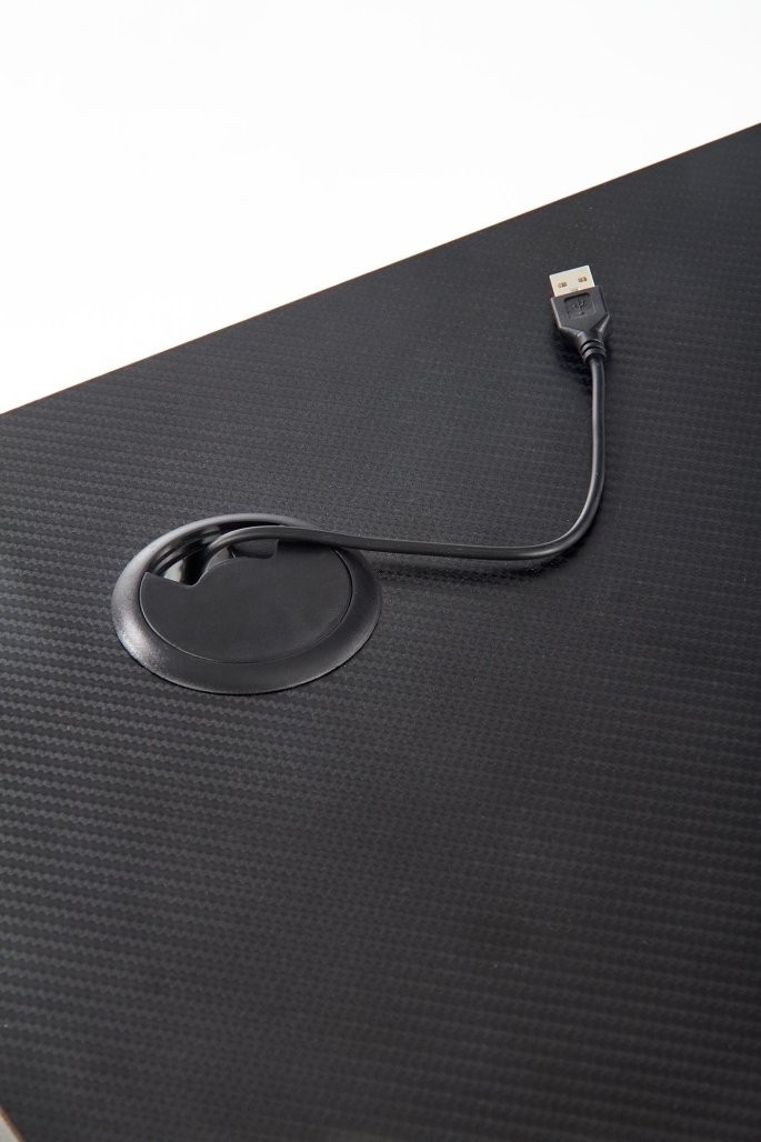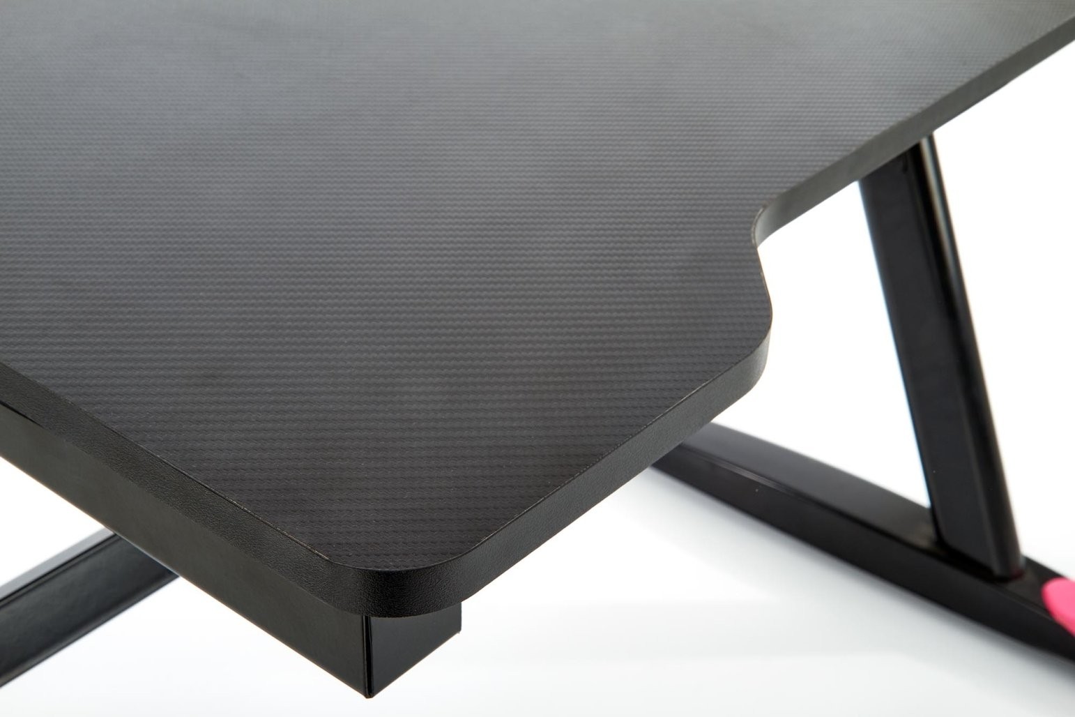Radni stol Orel s crnom površinom i crvenim LED osvjetljenjem za moderni ured. Savršen komad za tehnološke entuzijaste koji cijene moderan dizajn i funkcionalnost.