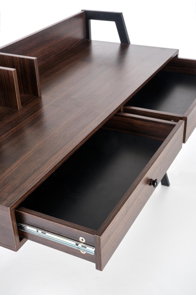 Radni stol Ulan s orahovom površinom i crnim metalnim okvirom dizajniran je za moderan stil. Idealan komad za kućnu ili poslovnu upotrebu koji spaja stil i funkcionalnost.