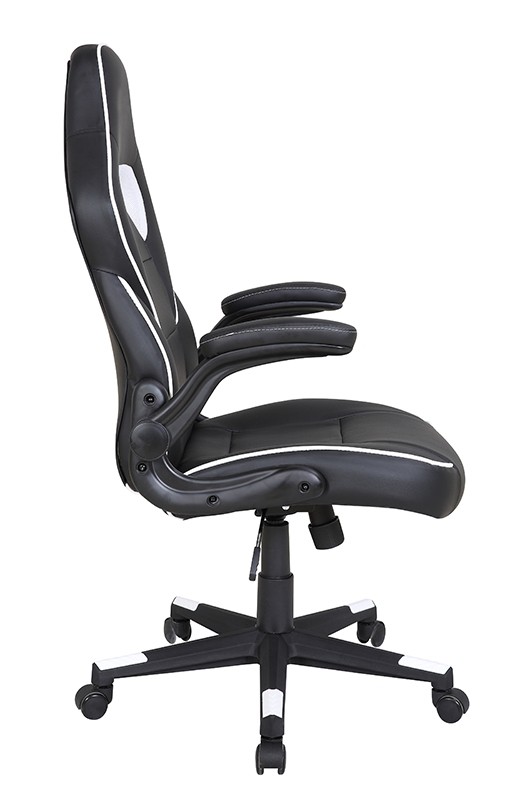 Pisarniški ali gaming stol STREAK je vrtljiv in nastavljiv po višini ter ima možnost nagiba sedišča in hrbtišča, zato si ga lahko maksimalno prilagodite svojim željam in potrebam. Stol je podložen in oblazinjen v umetno usnje v črni barvi z belimi detajli, ki mu nudi moderen videz. Nastavljivi rokonasloni so oblazinjeni v umetno usnje črne barve. Ima pet plastičnih kolesc v črni barvi. Maksimalna nosilnost je 120 kg.