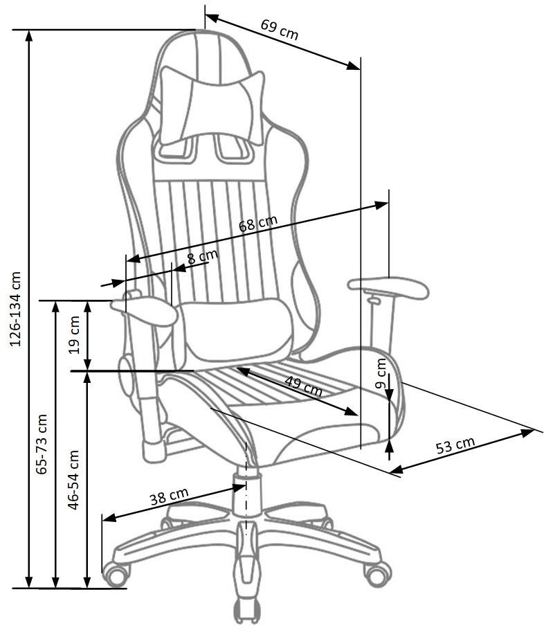 Uredska stolica Ciril s mehanizmom za nagib, podesivim rukohvatima i sklopivim naslonom u crno-crvenoj boji. Savršen izbor za igraće sobe s visinom sjedala 46–54 cm.