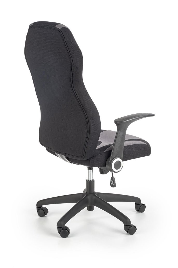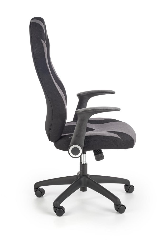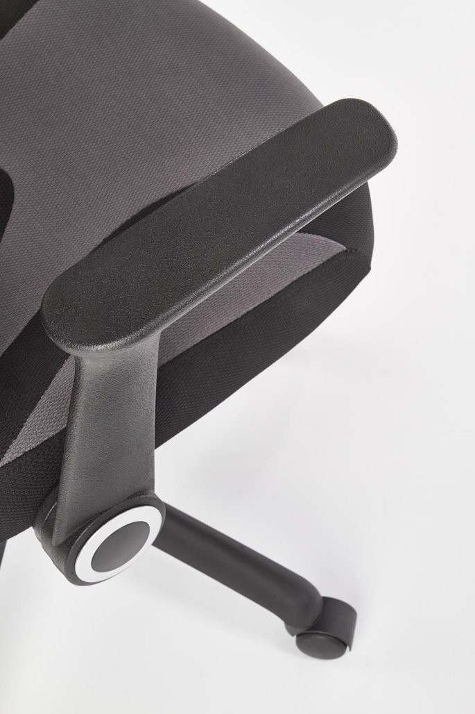 Stol Elson kombinira suvremeni dizajn s sivom i crnom presvlakom od tkanine i nagibnim mehanizmom. Sjedište podesivo od 42 do 50 cm omogućava ergonomsko prilagođavanje za uredski rad, dok metalni okvir osigurava stabilnost.