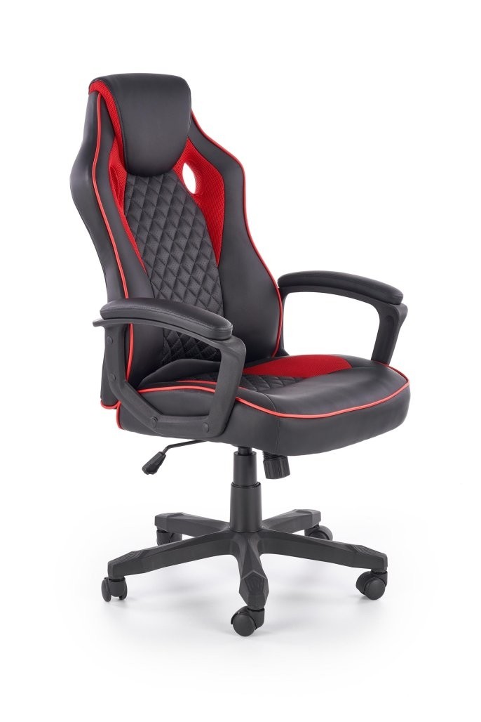 Uredska stolica Eris s nagibnim mehanizmom i crnim eko kožom s crvenim detaljima udoban je izbor za igraonice. Udobno navlake i prilagodljivost osiguravaju ergonomsku podršku.