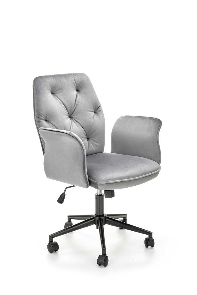 Uredska stolica Irsen s nagibnim mehanizmom i baršunastom presvlakom, dostupna u sivoj i rozoj boji. Ugodan izbor za ured ili kabinet.