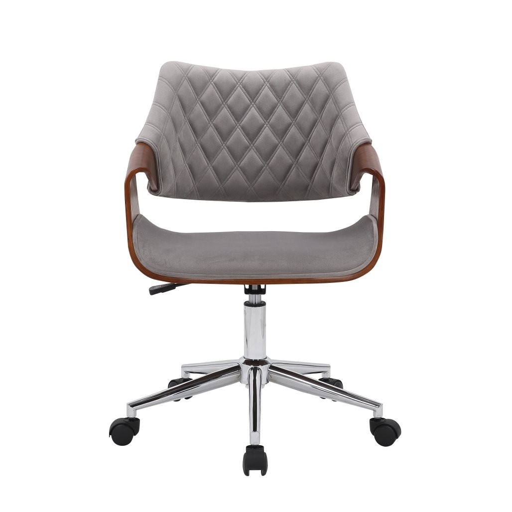Uredska stolica Islor izrađena iz savijenog furnira i presvlakom od baršuna u sivoj boji. Ova uredska stolica je praktična stolica s jednostavnim podiznim mehanizmom, dimenzija 80-90 x 58 x 64 cm.