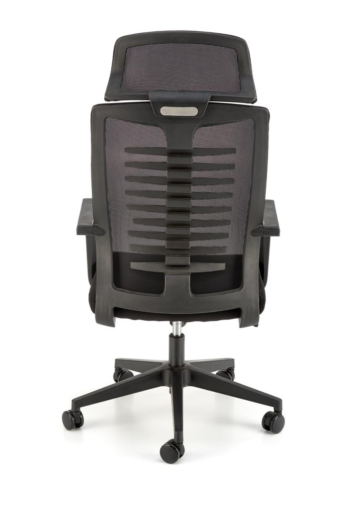 Uredska stolica Ralin u crnoj boji s nagibnim mehanizmom i metalnim okvirom pruža ergonomsku podršku i udobnost pri radu. Prikladna za moderne urede i dugotrajno sjedenje.