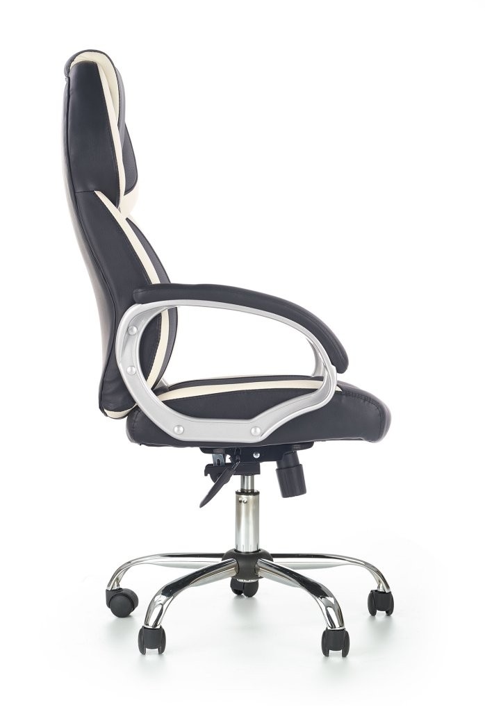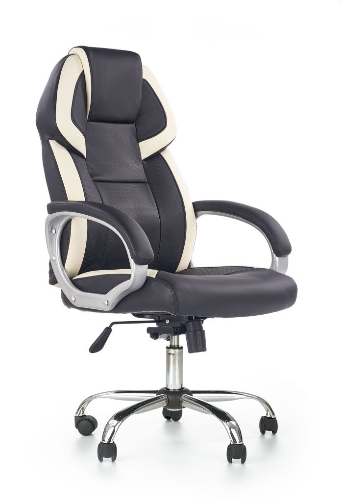 Uredska stolica Tariel s presvlakama od perforirane eko kože u crno-bijeloj boji i multiblok mehanizmom nudi prilagodljivu udobnost. Moderan izbor za dugotrajnu upotrebu u uredu.