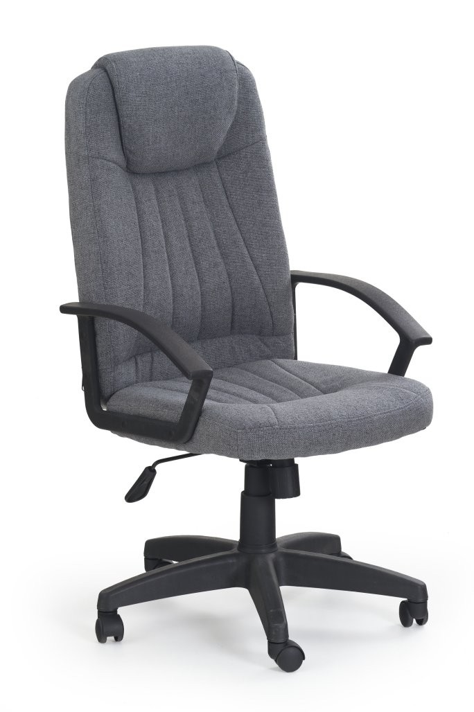 Uredska stolica Ulren s TILT mehanizmom omogućuje naginjanje i podešavanje visine za dodatnu udobnost. Presvučena sivom tkaninom, prikladna za tradicionalne urede.