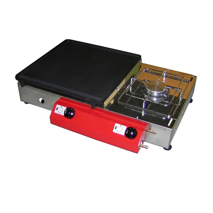 Plinski roštilj Gorenc, 65 x 40, kuhalo, LTŽ ploča, bez noga je jednostavan plinski roštilj, koji se može staviti na stol ili drugu ravnu površinu. Okvir roštilja izrađen je od nehrđajućeg čelika, a ploča od kotlovskog čelika. Roštilj sadrži i kuhalo.