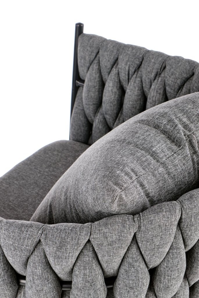 Naslonjač Alina u sivoj boji s dodatnim jastukom za udobnost idealan je za svaki moderan prostor. Kvalitetna tkanina i metalni okvir osiguravaju trajnost i elegantan izgled.