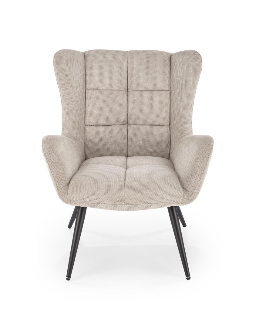 Naslonjač Hiren s krem presvlakom od tkanine VARDO i crnim metalnim okvirom idealan je za klasične ili moderne dnevne sobe.