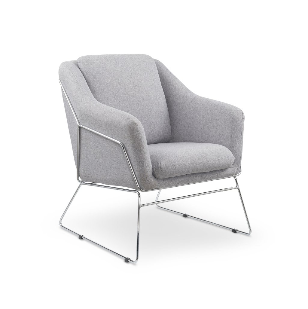 Fotelja Moran u sivoj tkanini s kromiranim nogama donosi modernost u prostor. Kompaktan dizajn i visina sjedala 46 cm za optimalnu udobnost.