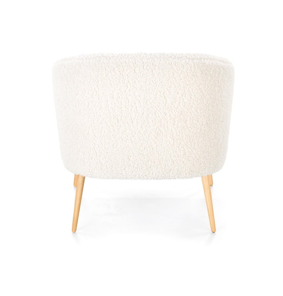 Naslonjač Niran u skandinavskom stilu od bukle tkanine i prirodnog drveta donosi profinjen izgled s visinom sjedala od 45 cm. Krem boja i udobnost prirodnih materijala dodaju toplinu svakom prostoru, savršen za dnevne sobe ili kutke za opuštanje.