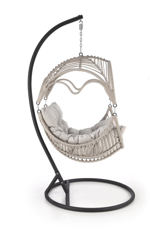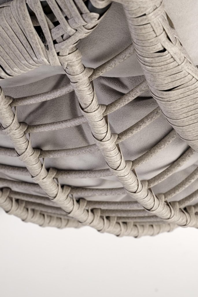 Naslonjač Renal u svijetlo sivoj tkanini s okvirom od umjetnog ratana pruža udobnost za opuštanje i savršen je dodatak u svakom boho ili skandinavskom prostoru.