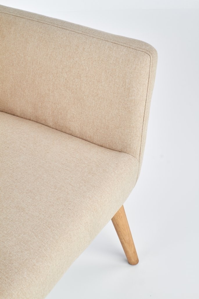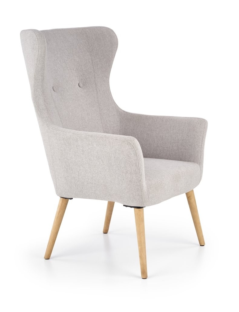 Naslonjač Rilon s mogućnošću odabira različitih boja, izrađen od tkanine i masivnog drveta. Skandinavski stil u kombinaciji s tradicionalnim dizajnom. Visina sjedala 43 cm.