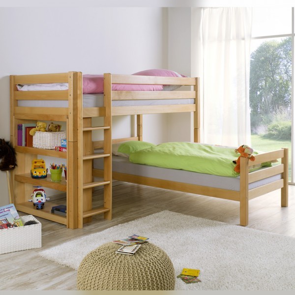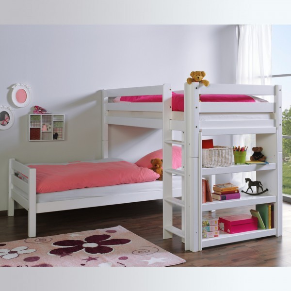 Krevet na kat DENI L dostupan je u bijeloj ili bukva boji i izuzetno praktično je rješenje za dječju sobu. Krevete i police možete i odvojiti, jer su samostojeći. Ljestve i podnice uključene su u cijenu.