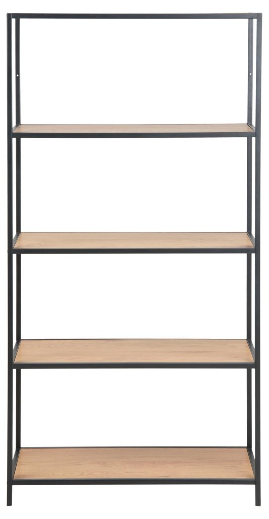 Polica Kivia nudi vam prostran prostor za knjige, dekorativne predmete ili druge male predmete, sve to uz industrijski dizajn. S 4 police u boji divljeg hrasta i robustnom metalnom konstrukcijom u mat crnoj boji, spaja stil i funkcionalnost, dok grubo praškasto lakirano podnožje osigurava stabilnost i dugotrajno korištenje. Ova jednostavna, ali zanimljiva forma knjižnice nenametljivo će istaknuti vaš osobni stil u bilo kojem prostoru.