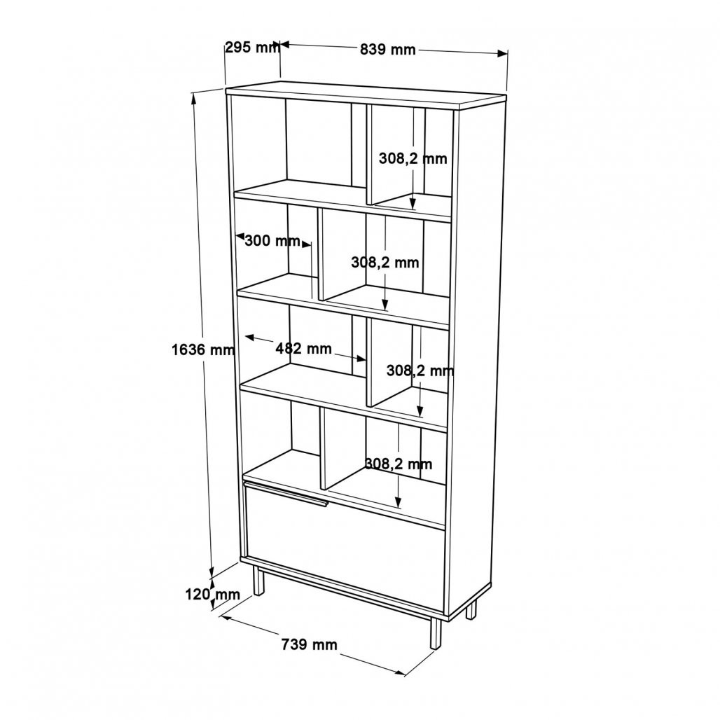 Debljina od 18 mm pruža dovoljno prostora za pohranu i izlaganje vaših omiljenih predmeta. Širina od 83,9 cm i visina od 175,6 cm omogućuju obilje prostora, dok dubina od 29,5 cm osigurava smještaj i većih predmeta. Metalne noge dodaju moderan izgled te dodatnu stabilnost i podršku.