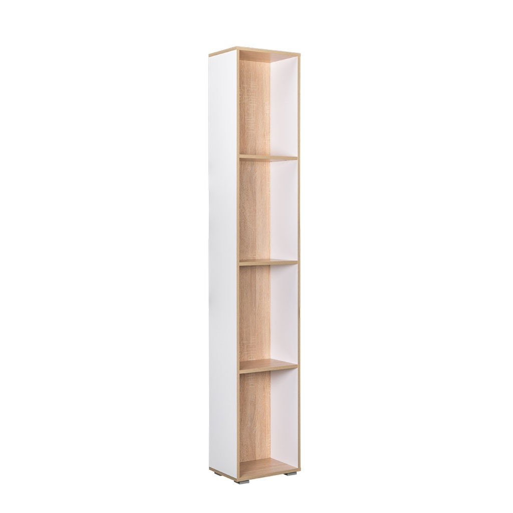 Poličar TALAS 8 je jednostavna, elegantna i kompaktna polica u kombinaciji bijele i hrasta sonoma. Zbog svoje male veličine savršeno se uklapa u svaki kutak vašeg stana, a 3 police nude dovoljno mjesta za odlaganje knjiga i raznih ukrasa.