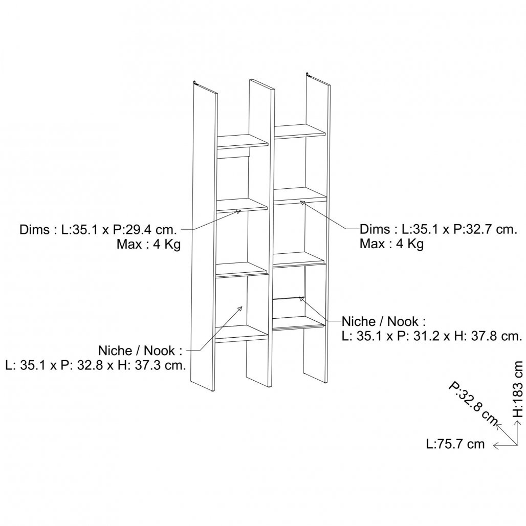 - Poličnik ima 8 otvorenih polica, svaka s maksimalnim opterećenjem do 4 kg