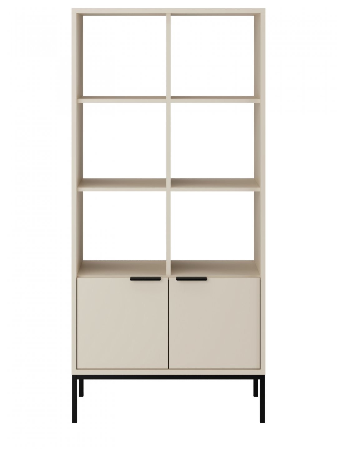Budući da je model dostupan u više varijanti boja, lako se uklapa u različite stilove uređenja. Poličar nudi 6 otvorenih polica za knjige, dekoracije ili zbirke te 2 zatvorena elementa u donjem dijelu za pohranu stvari koje želite sakriti. Aluminijske ručkice i čelične noge s praškastim premazom nadopunjuju funkcionalan dizajn, a vrata imaju šarke s tihim zatvaranjem i otvaranjem do 110 stupnjeva.