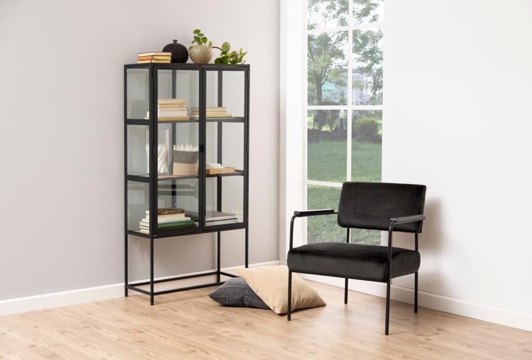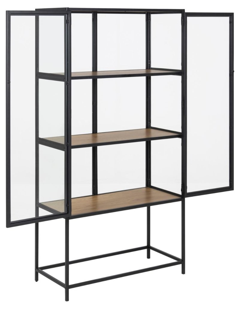 Završite prostor sa stilom i izvrsnim pohranjivanjem. Poličnik Hebron 2 pruža vam mogućnost da maksimalno iskoristite svoj prostor. Kabineti sa staklenim vratima izvrsno se uklapaju u kuhinju ili dnevni boravak, a tri police omogućuju skladištenje vaših osnovnih stvari sa stilom. Metalni okvir je obrađen mat crnim praškastim lakom, što daje industrijski osjećaj namještaju. Proizvod zrači svojom jedinstvenošću i prilagođava se različitim stilovima dekoracija.